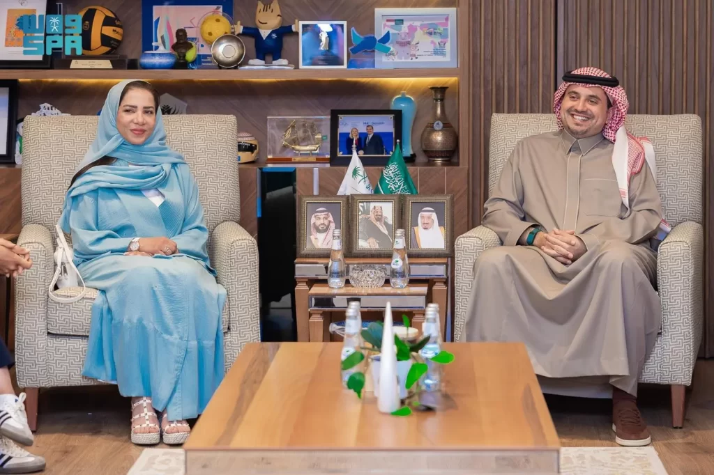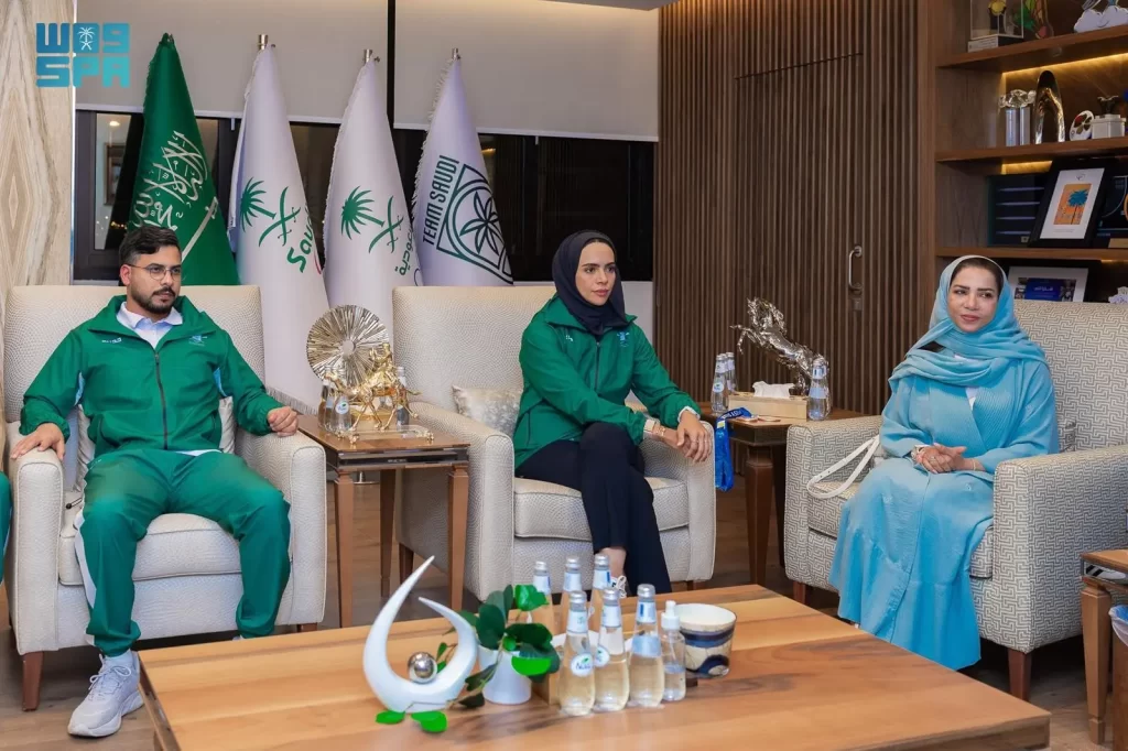 نقل صاحب السمو الأمير فهد بن جلوي بن عبدالعزيز بن مساعد، نائب رئيس اللجنة الأولمبية والبارالمبية السعودية، تحيات وتهنئة صاحب السمو الملكي الأمير عبدالعزيز بن تركي بن فيصل للاعبي فريق السعودية للتجديف، خلال لقائه بهم في مكتبه بمجمع الأمير فيصل بن فهد الأولمبي بالرياض.