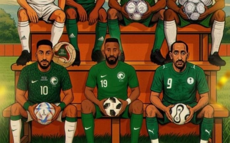 سطرت مقاعد الأخضر لوحة تاريخية جمعت ستة من نجوم المنتخب من حقب مختلفة. تجلت في هذا العمل مشاهد تختصر أكثر من ثلاثين عامًا من الحضور السعودي في المونديال، مما يعكس روح الاستمرارية التي تتميز بها مسيرة كرة القدم السعودية، ليظهر أن الإنجازات الرياضية ما هي إلا امتداد لرؤية وطن يعانق الطموح ويزرع الفخر في أجياله.