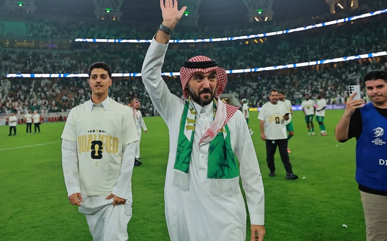 وولي العهد الأمير محمد بن سلمان، رئيس مجلس الوزراء، بالإضافة إلى الشعب السعودي، احتفاءً بتأهل المنتخب الوطني الأول لكرة القدم إلى نهائيات كأس العالم 2026، التي ستُقام في الولايات المتحدة الأمريكية وكندا والمكسيك.