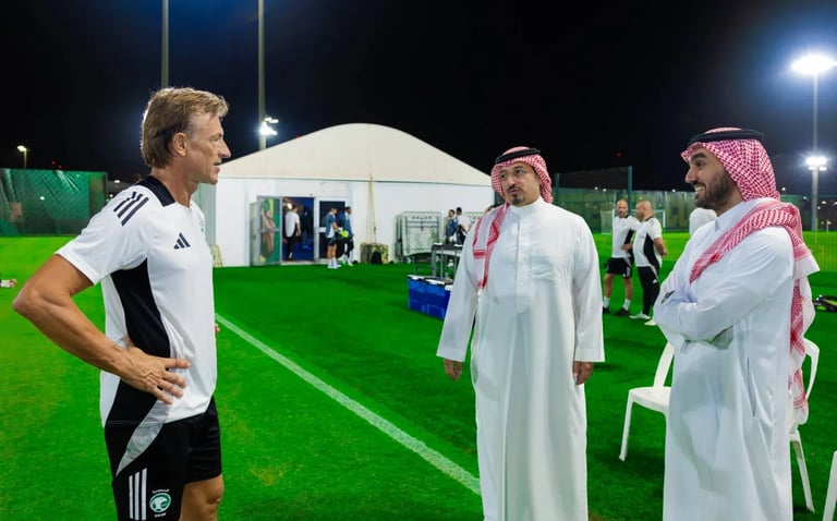 حضرا مساء الاثنين تدريبات المنتخب السعودي الأول التي أقيمت على الملعب الرديف بمدينة الملك عبد الله الرياضية بجدة. وجاءت هذه الخطوة في إطار دعمهما وتحفيزهما للفريق قبل مواجهته المقبلة أمام منتخب إندونيسيا يوم الأربعاء، ضمن الملحق الآسيوي المؤهل إلى كأس العالم لعام 2026.